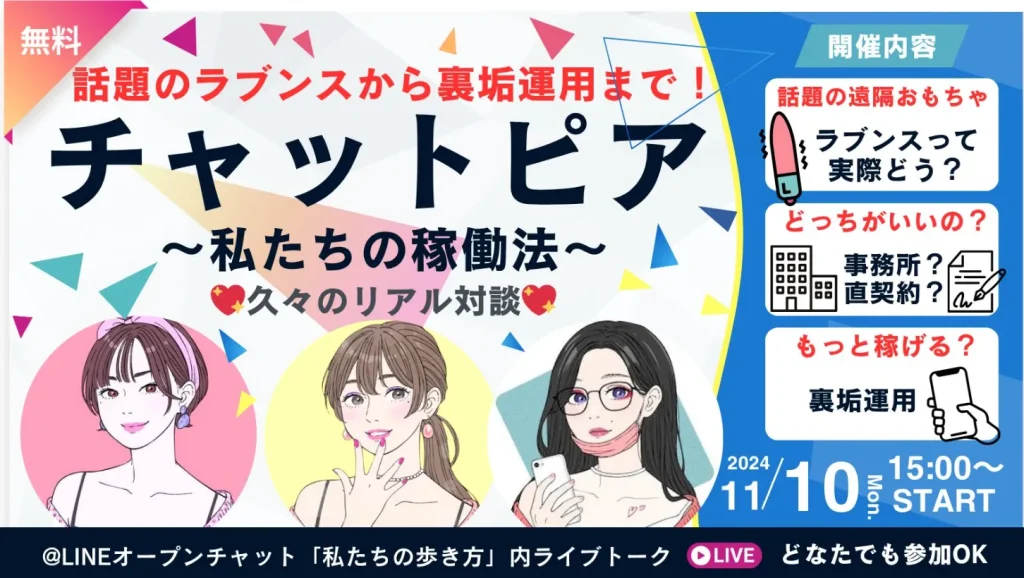 1000人越えのチャトレ&メルレ界隈コミュニティがリアルな声をお届けします!最新の限定ライブトークを公開していきますよ!