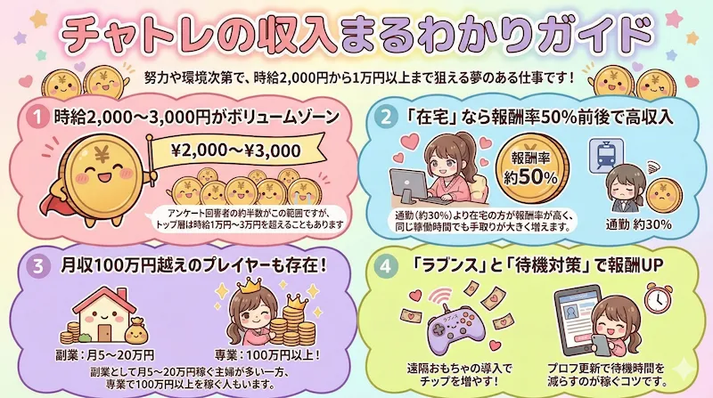 チャットレディとして高収入を得るためには、自分に合った働き方を選び、スキルを磨くことが重要です。