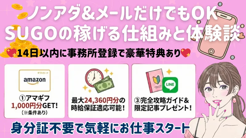 登録で3,000円、最大4.8万円の時給保証。紹介コード(1450)で最大5万円ボーナス ※要申請 | 登録はこちら 👩体験談を読む |