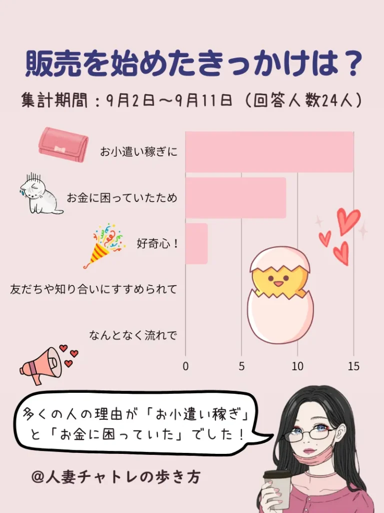今回は、販売を始めたきっかけについて聞いてみました!24人の方から回答いただけましたよ!