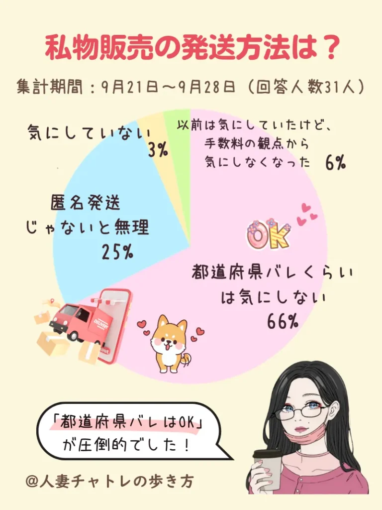 最後に、私物販売の発送方法についても聞いてみました。31人の方から回答がいただけましたよ。
